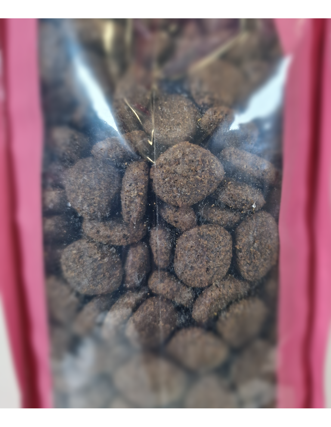Pescado 45% (Salmón Preparado Fresco 18%, Salmón Deshidratado 8%, Pescado Deshidratado 8%, Trucha Preparada Fresca 7%, Aceite de Salmón 2% y Salsa de Salmón 2%), Patata (18%), Boniato (18%), Almidón de Guisante, Pulpa de Remolacha (3%), Alfalfa, Aceite de Girasol, Minerales, Itch-Eeze® (2645 mg/kg)