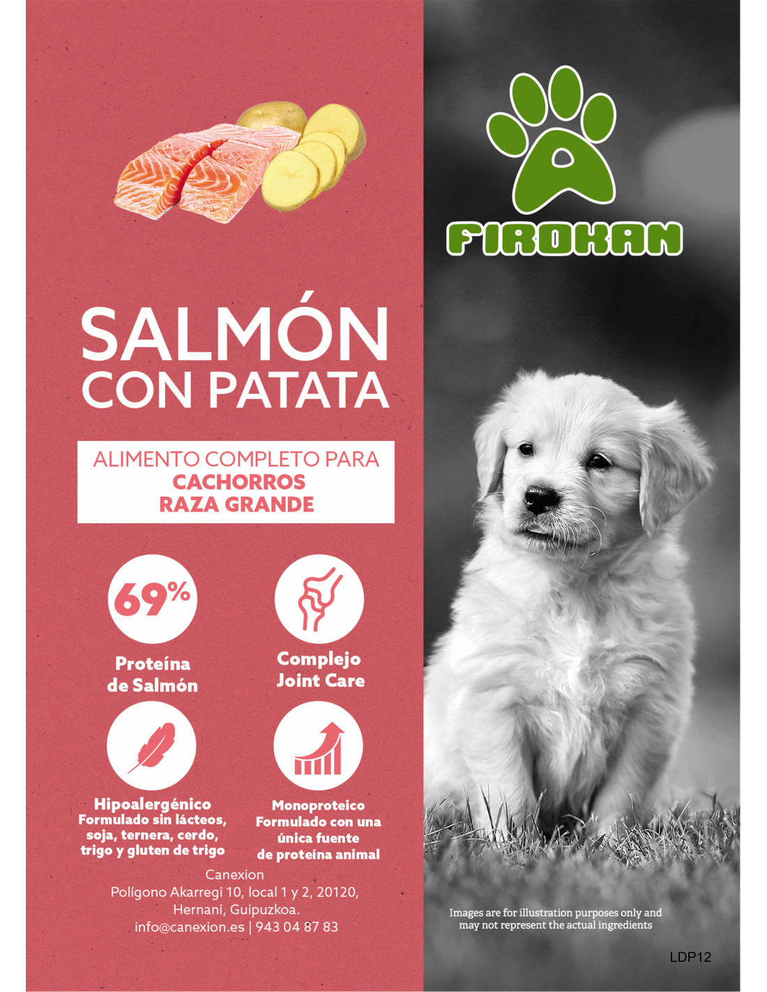Firokan salmón con patata es un alimento completo para cachorros de raza grande.