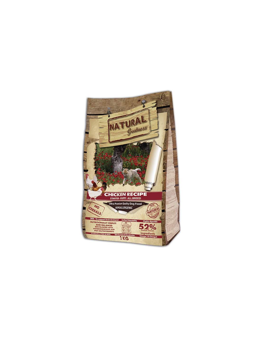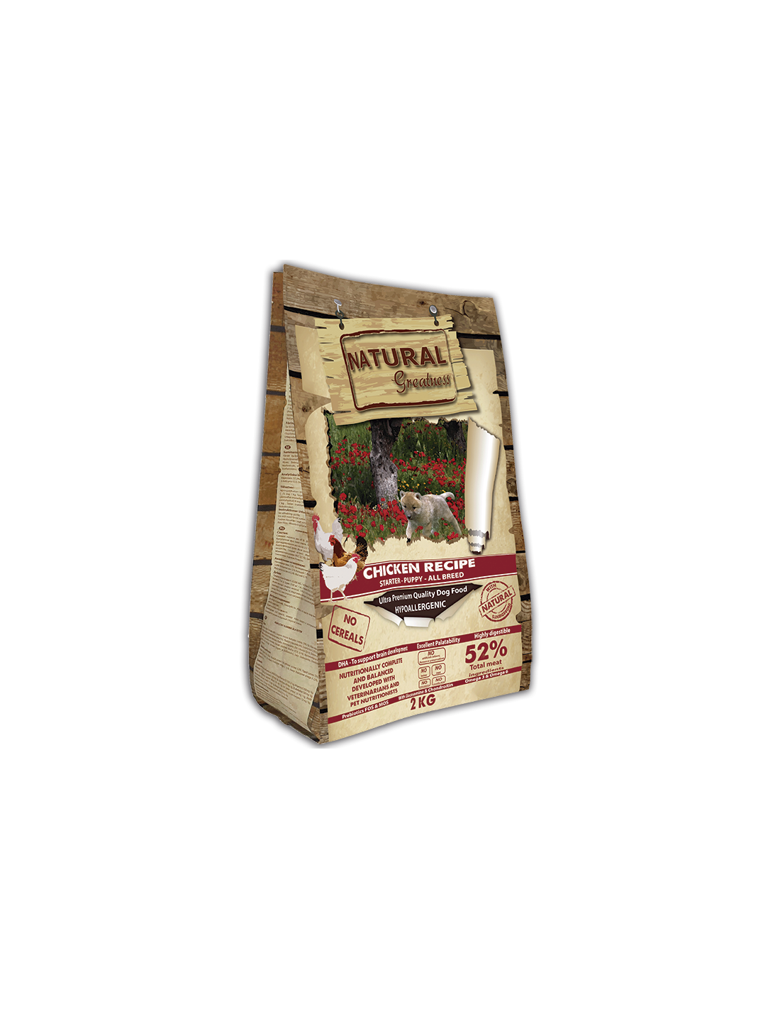 Natural Greatness receta de pollo es una excelente receta ultrapremium, hipoalergénica y monoproteica formulada sin cereales y diseñada para cachorros, hembras gestantes, en lactancia y adultos de razas pequeñas y medianas.