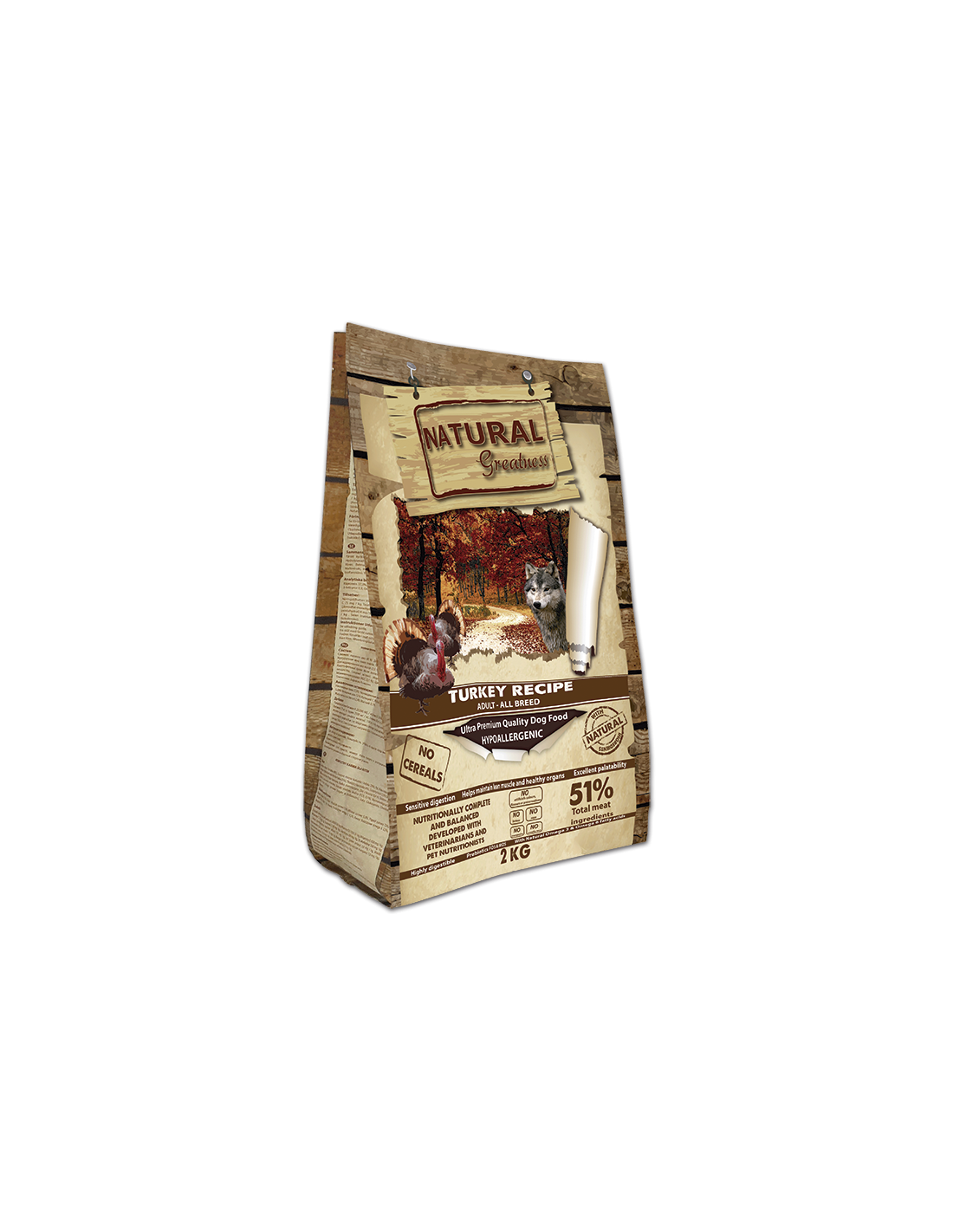 Natural greatness receta de pavo es una excelente receta ultrapremium e hipoalergénica formulada sin cereales para perros adultos de todas las razas con digestiones sensibles.