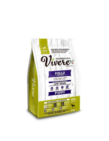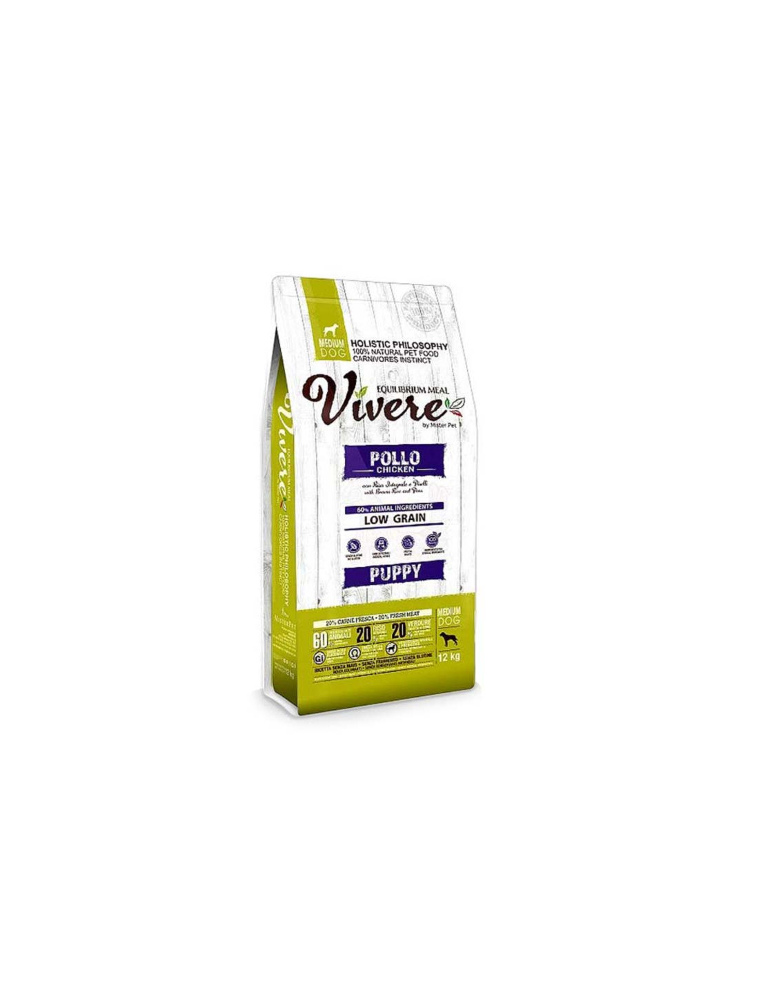 Vivere Pienso de Pollo para Cachorros Razas Medianas es un alimento 100% natural diseñado específicamente para cachorros de razas medianas, con pollo como base principal.